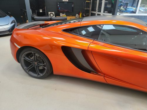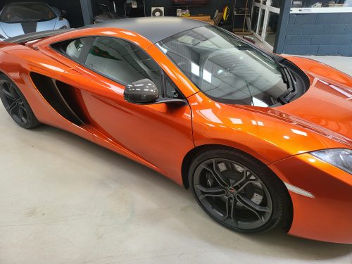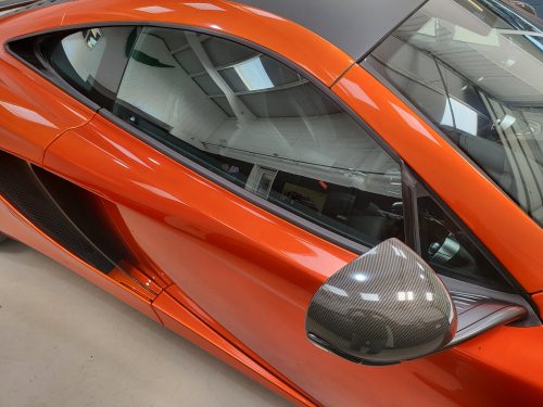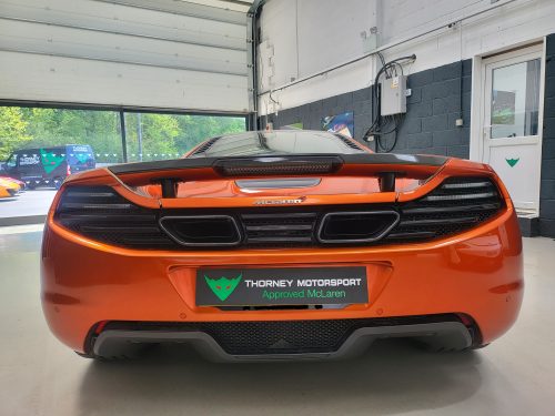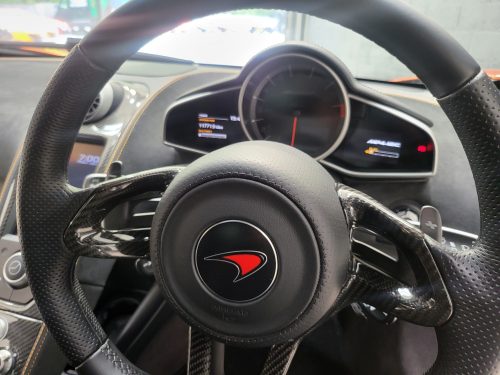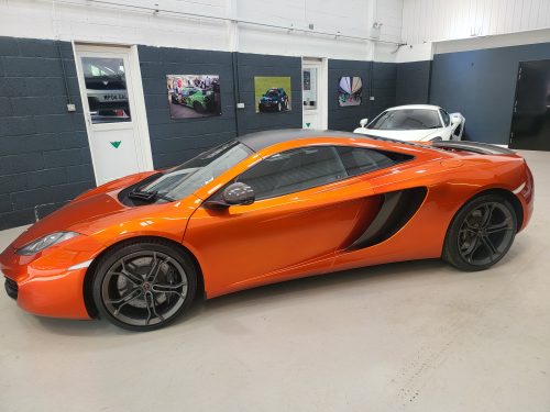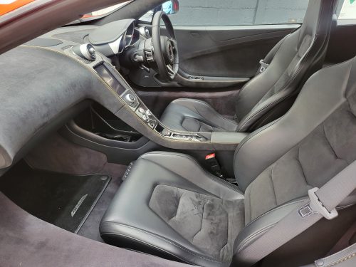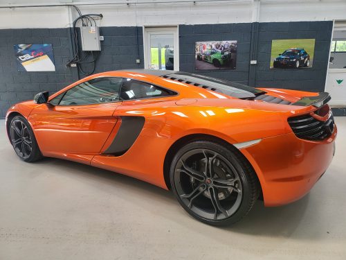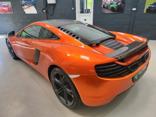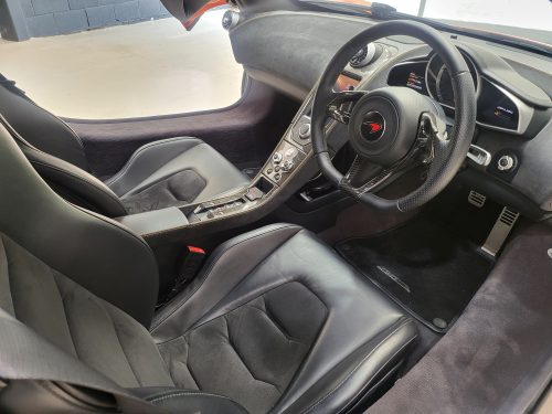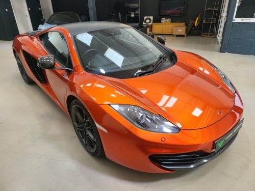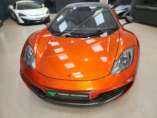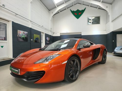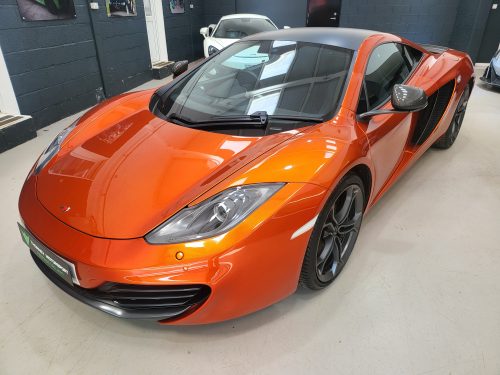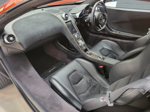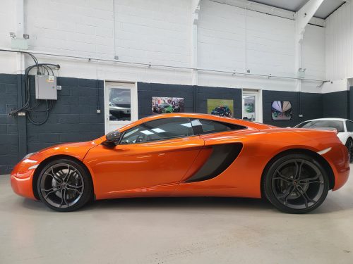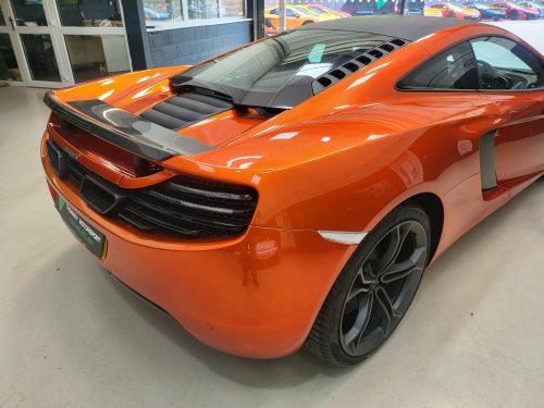 Stunning Volcano Orange coupe fitted with anthracite wheels and alcantara and leather interior with orange contrast stitching. Carbon fibre wrapped rear airbrake, air intakes and matt black wrapped roof set off the car perfectly. Car fitted with McLaren sports exhaust, carbon fibre engine panels, carbon fibre interior, stealth pack and has recently had its full service, replacement rear lights and new accumulators so is all good to go for all covered by our warranty.