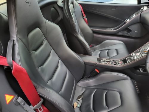 As for the car, well its a truly stunning example and utterly unique, Paul specced the car to match his 675LT so it has a carbon fibre bonnet, MSO carbon fibre louvred wings, carbon fibre bumper, rear bumper, wing mirrors and the roof is wrapped black to match the carbon fibre roof on the 675LT. It really is a stunning example. The interior is classic black leather with MSO red seat belts.