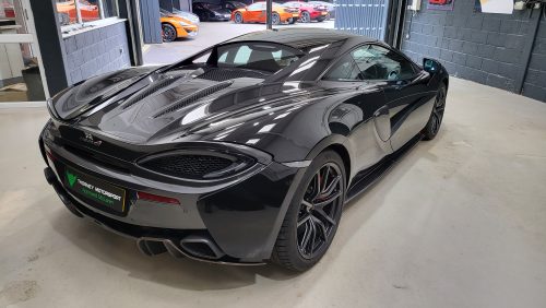Unique combination of Onyx Black, good spec, sports exhaust, Bowers and Wilkins audio. Mechanically and visually perfect. Just fitted new style DLD and full 40k service, vehicle has front PPF as well. Great way into McLaren ownership for relatively low cost with no degradation in quality or reliability. Looked after by us since 2021, 3 previous owners.
