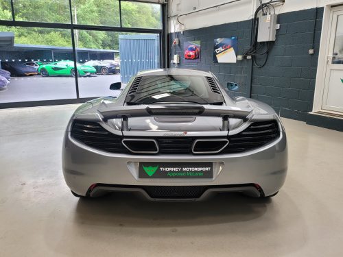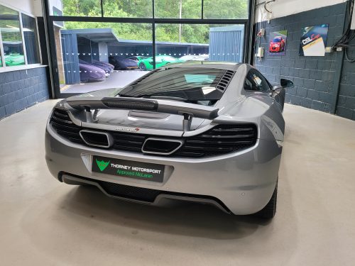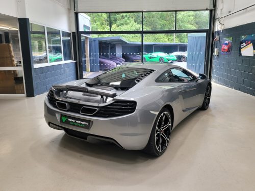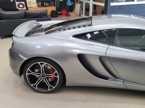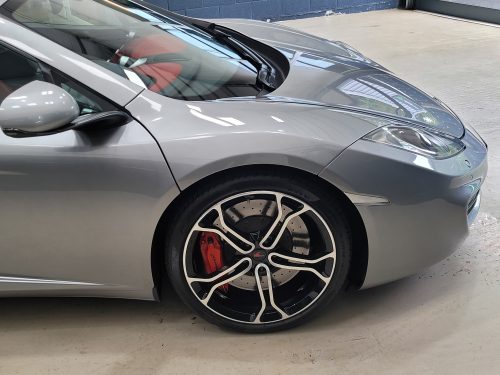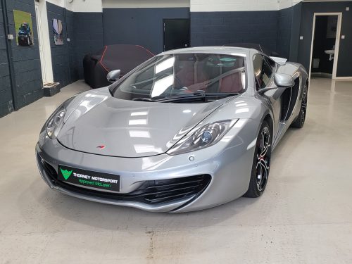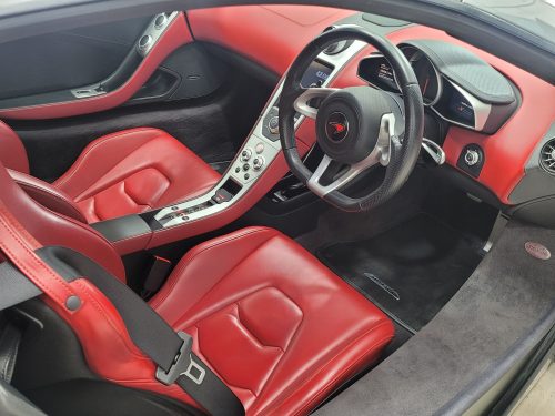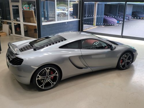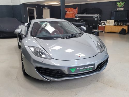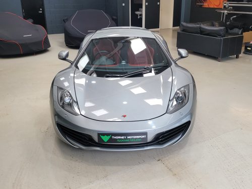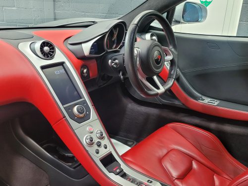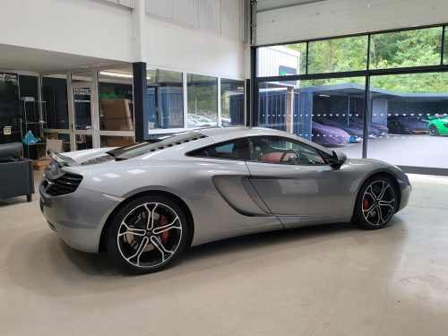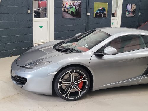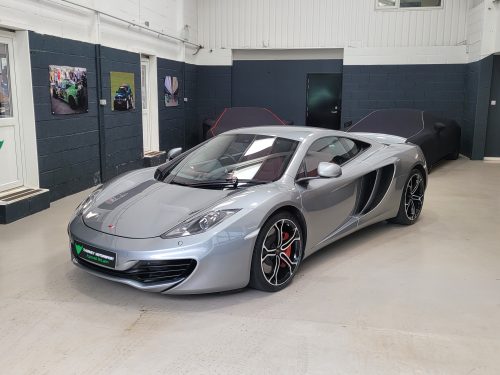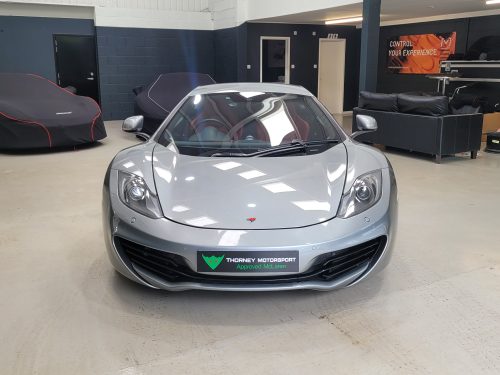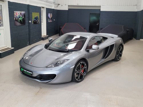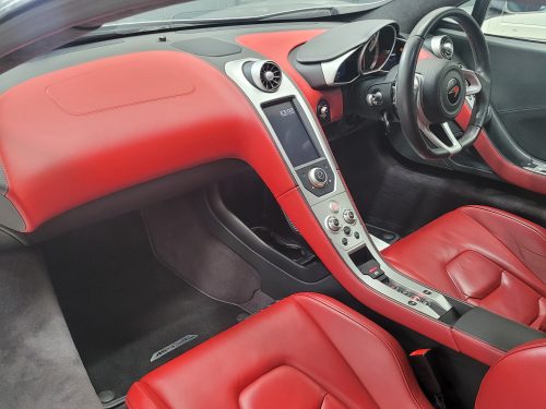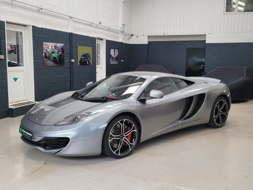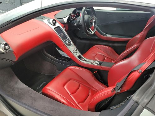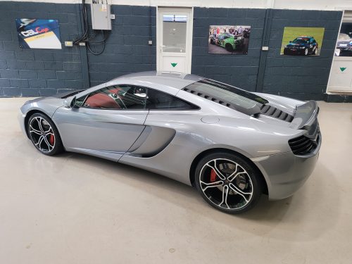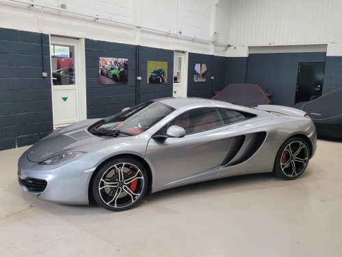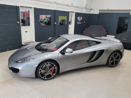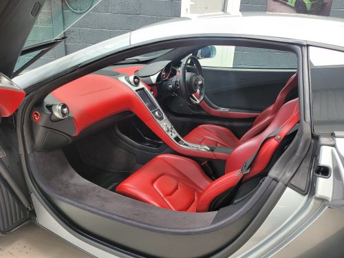 Really stunning swipe door 12c coupe in Titanium silver with brilliant Harissa red leather interior, really special. Sports exhaust, electric heated seats, diamond cut wheels, Meridian sounds and red callipers, very striking. Front end and impact area PPF, we have also fitted soft close doors. New Accumulators fitted last year.