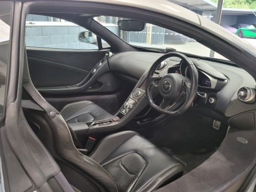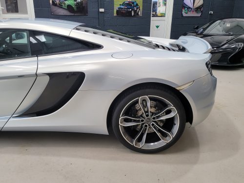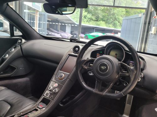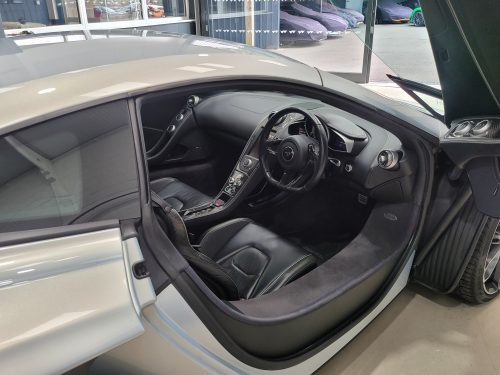 Finished in the popular Ice Silver its a classic yet understated combination which suits the lines of the car with carbon fire air intakes, carbon fibre interior upgrade, electric and heated seats, sports exhaust, carbon seat backs, Meridien ICE and sports exhaust. Car also has lift fitted, not common on a 12c and has full PPF.