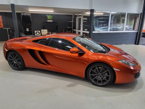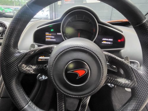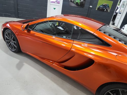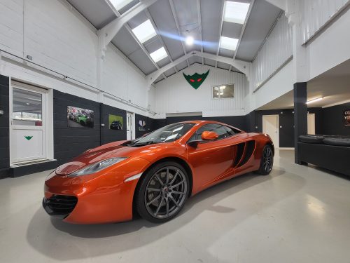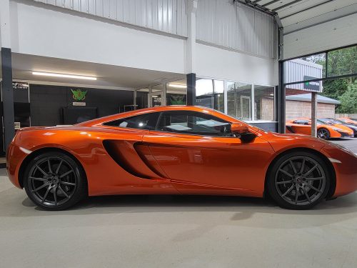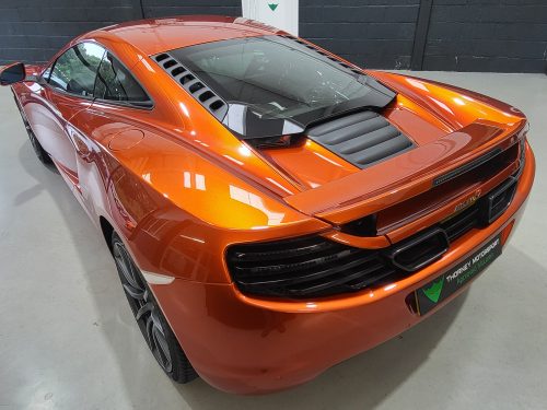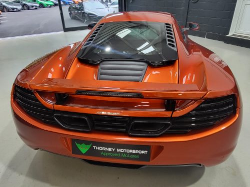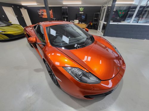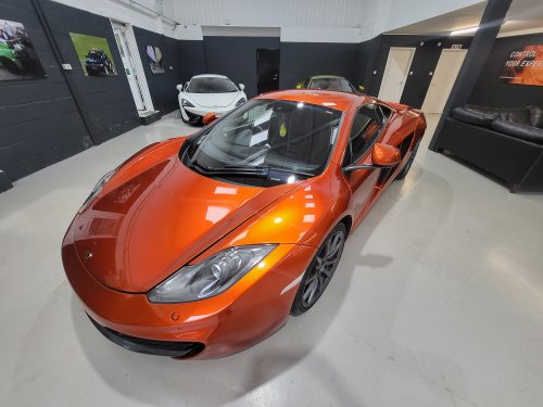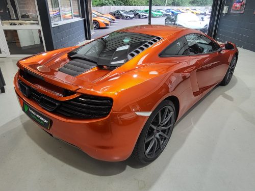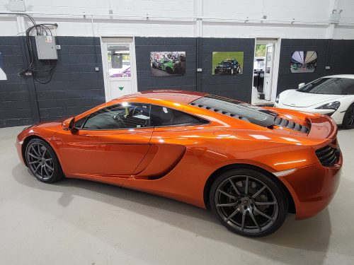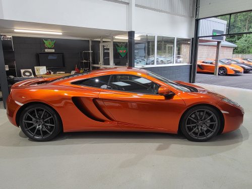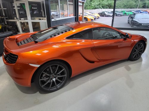 Lovely specification Volcano Orange with low miles. McLaren sports exhaust, Stealth Pack, carbon fibre engine panels and interior and rear diffuser, electric and heated seats (rare for a coupe) Paintwork is perfect (as all our cars are) and mechanically in need of nothing, fully backed by our reputation and warranty.