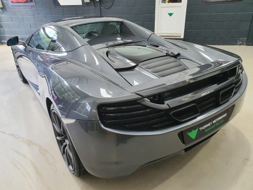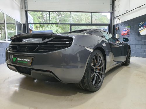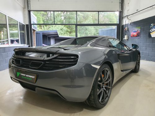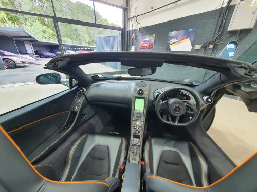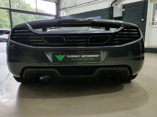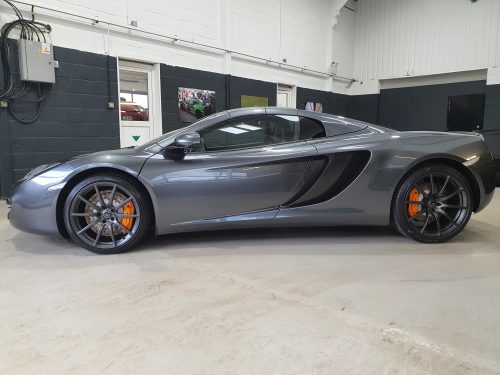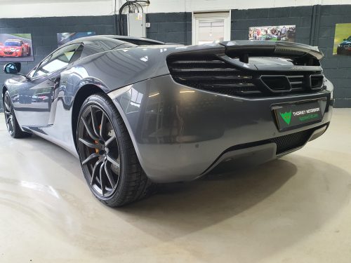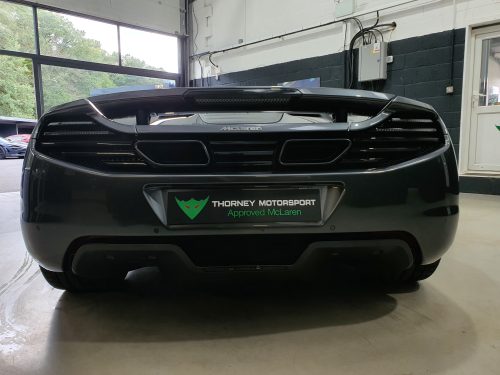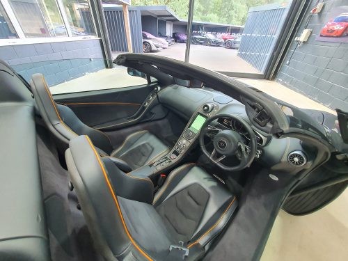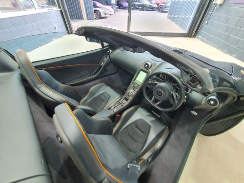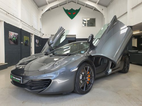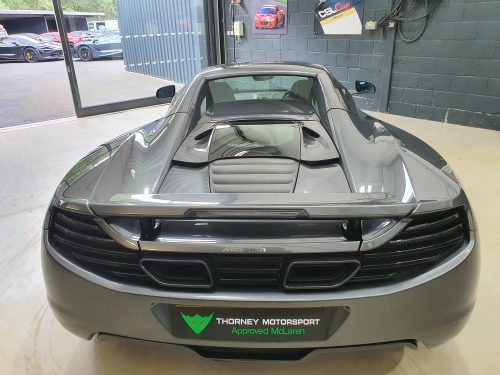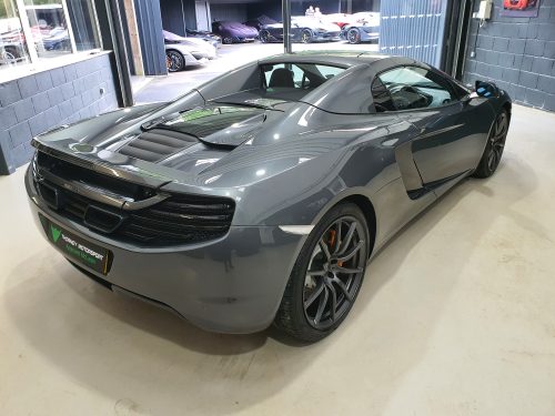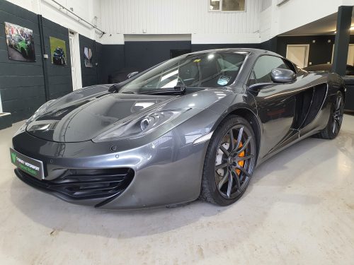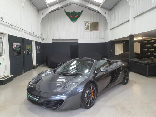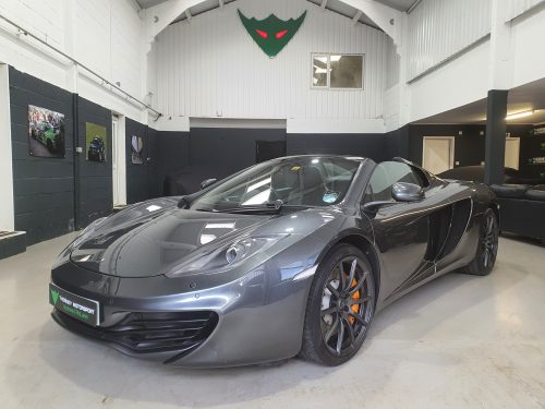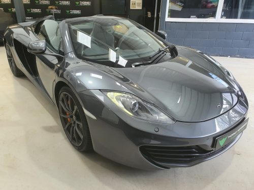 Ultra low miles 12c Spider is hard to beat for spec combination. Graphite grey exterior with orange callipers and matching interior contrast stitching on alcantara and leather is wonderful. Sports exhaust. Late 2014 model car still owned by original owner, car has been fully inspected and updated for servicing by to reflect the low number of services from low mileages for 100% confidence.