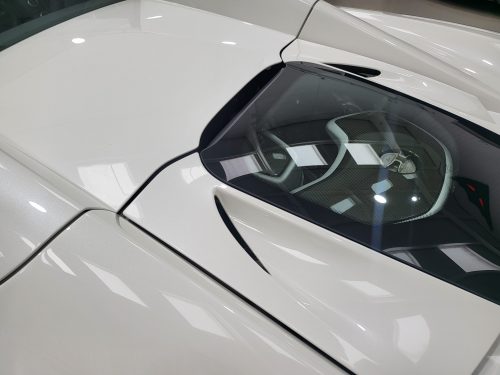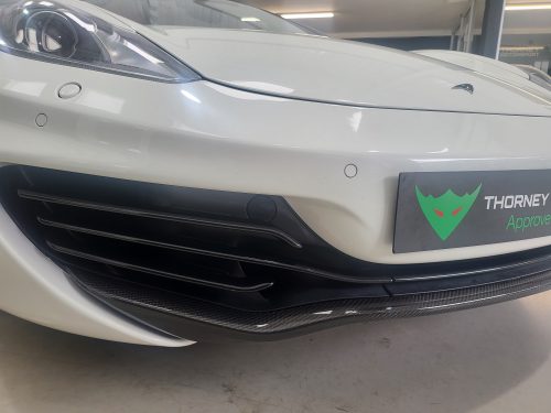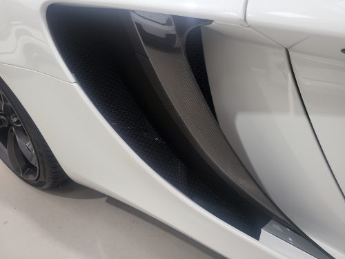 Really lovely spec Pearl White with extremely high options list including carbon fibre front splitter, air intakes, rear diffuser, wing mirrors, engine covers with a wonderful alcantara and leather interior with contrasting red stitching and gloss carbon fibre trim. Also has McLaren Sports exhaust and nose lift. The car has also been retrofitted with OEM McLaren carbon ceramic disks and callipers (you dont want to know how much that cost him!).