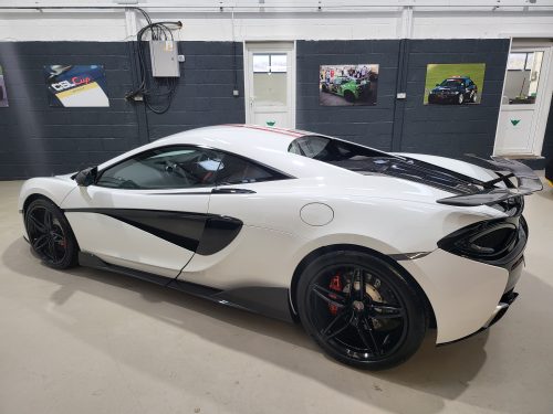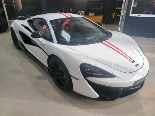 Lovely unique 540c with great factory specification and lots of nice add ons. Carbon fibre door mirrors, genuine 600LT carbon side skirts, Novitec carbon rear wing, our spacers and has been looked after by us for the past 3 years. Fully inspected, full warranty and unique spec.