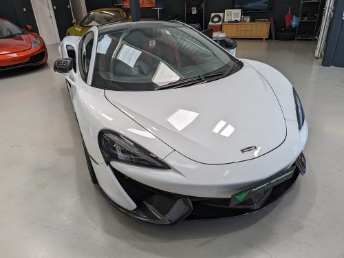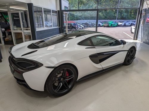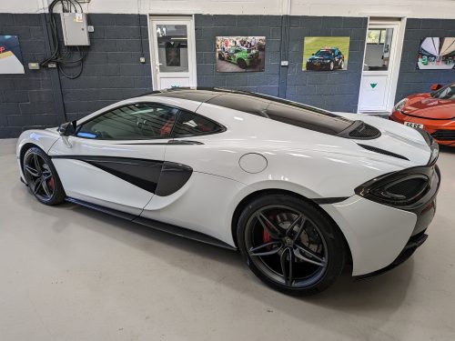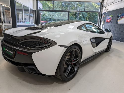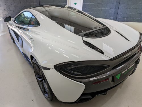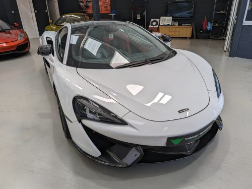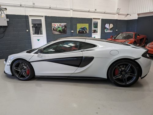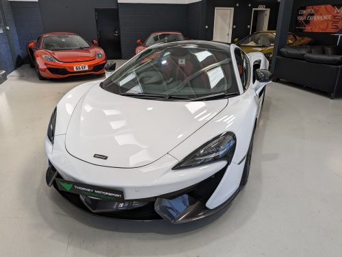 Really lovely, one owner from new, ultra low miles, Silica White with lovely black and red interior and trim. McLaren service history, immaculate car and very well looked after. Mclaren sports exhaust, carbon fibre interior, carbon fibre mirrors its a lovely spec and with such low miles is pretty much brand new. Priced to sell (which is sales speak saying its too cheap and it hurts to type it!)