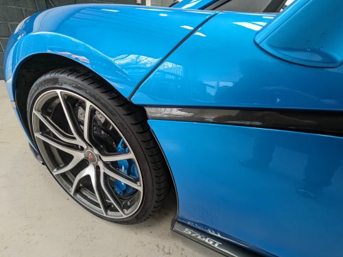 Wonderful Cerulean Blue GT with front PPF, Bowers and Wilkins stereo, interior carbon fibre and diamond cut wheels with all the usual GT benefits of steel brakes, panoramic roof and the extra storage space.