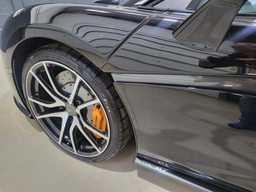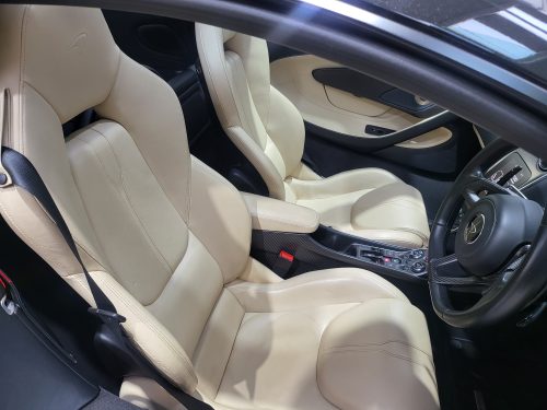 Stunning example of the 570GT in special Onyx black and diamond cut wheels, really special combination combined with rare Arieia leather interior which sets off the GT cabin really well. Car also has completely new suspension (4 new complete new shock absorbers) and has had £16,000 just spent on it – it wants for nothing! Fully inspected, fully protected by our warranty. Lovely carbon fibre interior with paddle upgrade as well as contrasting McLaren orange calipers.