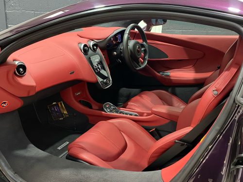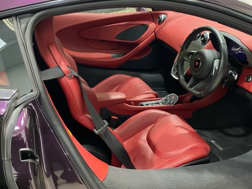 Utterly unique specification painted in MSO special order Cobalt Violet (as far as we know its the only one in this colour ever) combined with stunning Harissa Red leather interior it stands out above all the other black leather interior McLarens we have here. Only one owner from new, very low miles, looked after by us for the last 2 years its a wonderful car, stunning.