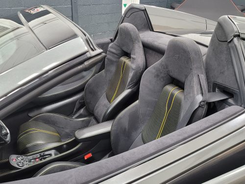 Stunning 570s Spider in striking combination of Storm grey paint and contrasting yellow highlights which extend to full interior alcantara trim.