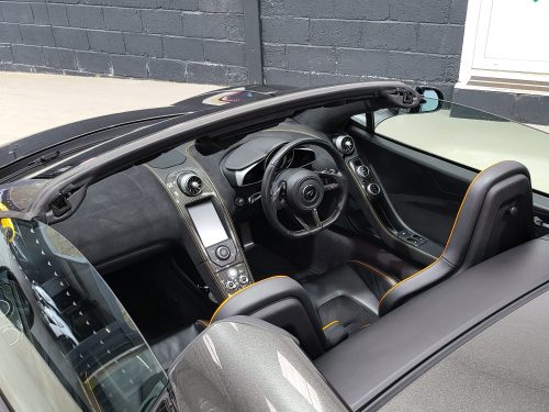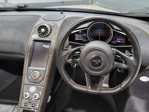Lovely low miles 650s in very desirable Storm grey with a McLaren warranty until November 2025. Car has much desired alcantara dash, leather/alcantara seats, full carbon fibre interior with contrasting McLaren orange trimming that matches the custom orange callipers – a stealth spec with style. Lift, front end PPF and service history round off the package.