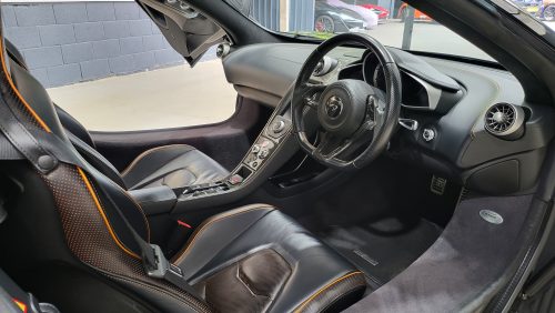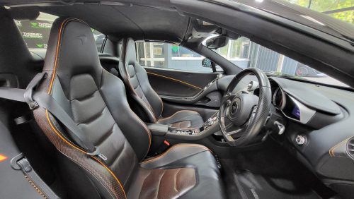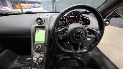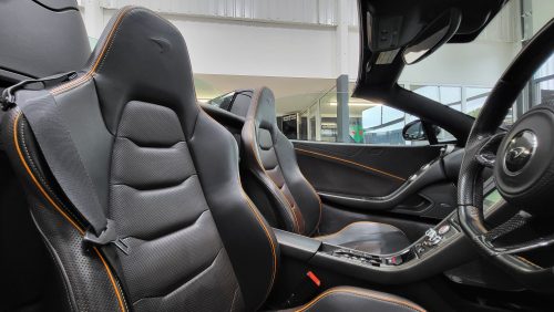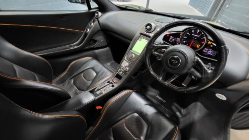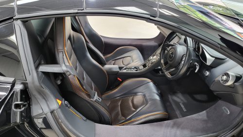 As for specification, lovely, carbon black, lovely contrasting McLaren orange trim and highlights, sports exhaust, Meridien stereo, full carbon fibre interior package with leather and alcantara trim.