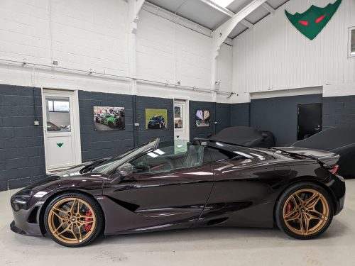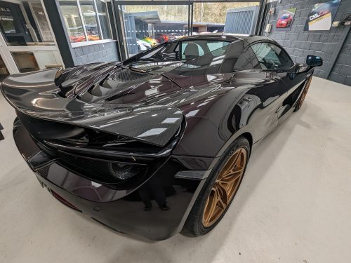 Striking 720 spider in special order Quartz (only one we have ever seen) colour. Literally dripping with carbon fibre upgrades and MSO parts all fitted by us, Performance spec car, sports exhaust, electro chromatic roof, carbon pack 1, MSO carbon deck cover, electric heated seats, full carbon fibre interior, carbon fibre rear air brake, MSO rear carbon diffuser, carbon rear bumper, carbon front splitter the list goes on and on!