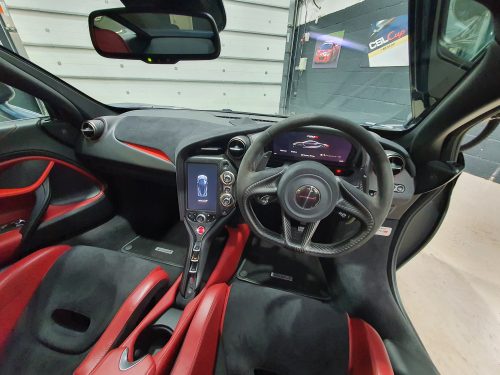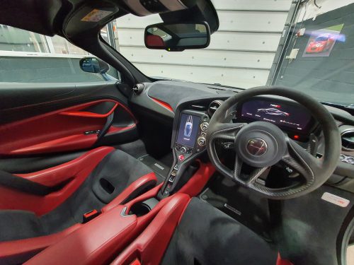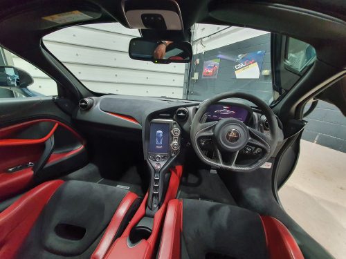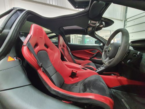Opportunity for very low miles 720 with P1 seats with only 2 previous owners. Carbon pack 1, gorilla glass roof (not broken), Performance model, carbon fibre mirrors, carbon fibre hood intake, carbon fibre air intakes, full carbon fibre interior with sports exhaust and striking Harissa red interior, full service history and front PPF.
