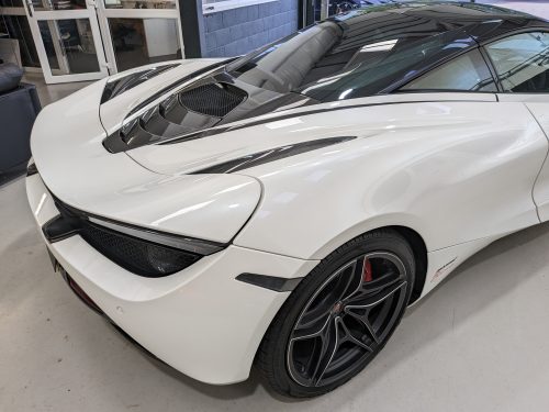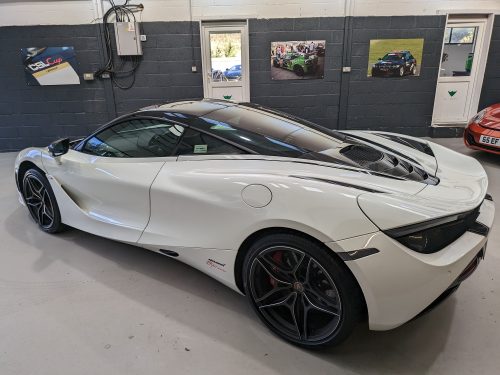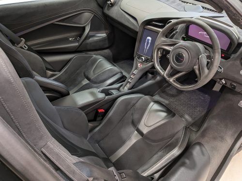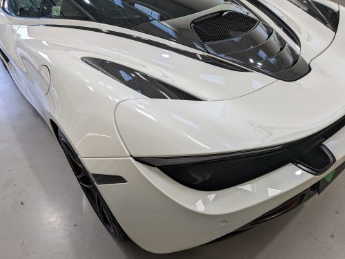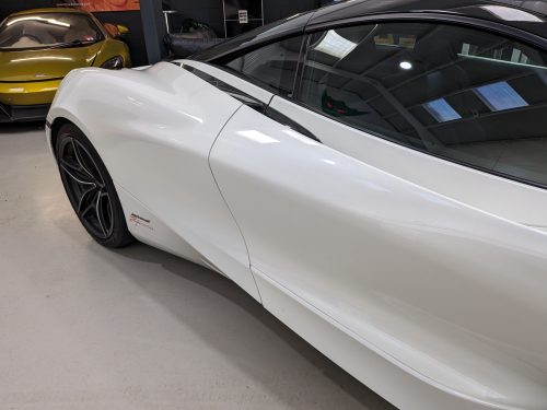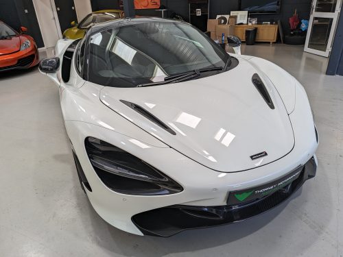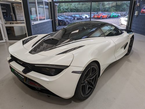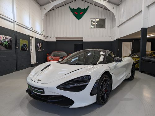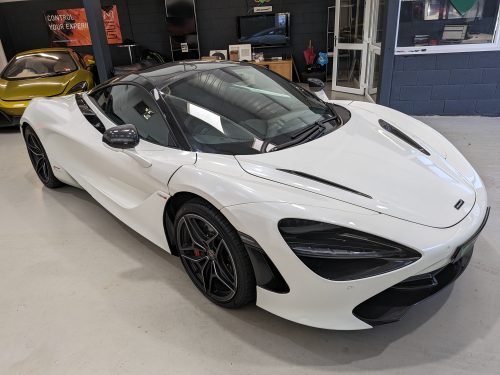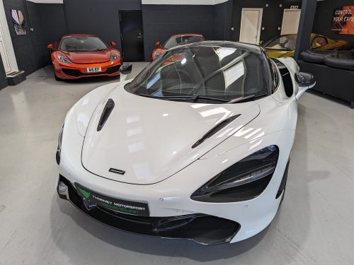 Huge spec 2018 model, carbon fibre Pack 1, 2 and 3 (so thats pretty much everything in carbon fibre), McLaren sports exhaust, Stealth pack, full alcantara interior with wonderful Pearl white paint its lovely. Full PPF and even fitted with a £900 front/rear camera which is included with the car. Low miles, one owner, very looked after.